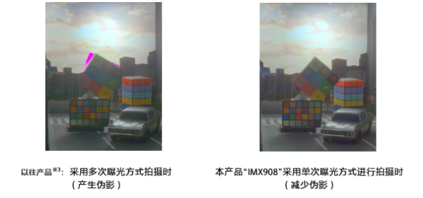 IMX908通过单次曝光方式实现高动态范围。与合成不同曝光时间多帧图像的多次曝光方式不同,本产品可以抑制伪影的产生并实现高速的图像输出。因此,拍摄动态主体时,能稳定实现高精度成像,有效抑制可能干扰AI图像识别的轮廓偏移和颜色偏差,从而提高识别精度。此外,IMX908还能输出由不同转换效率生成的多幅图像数据,为摄像头的设计提供更高的灵活性。